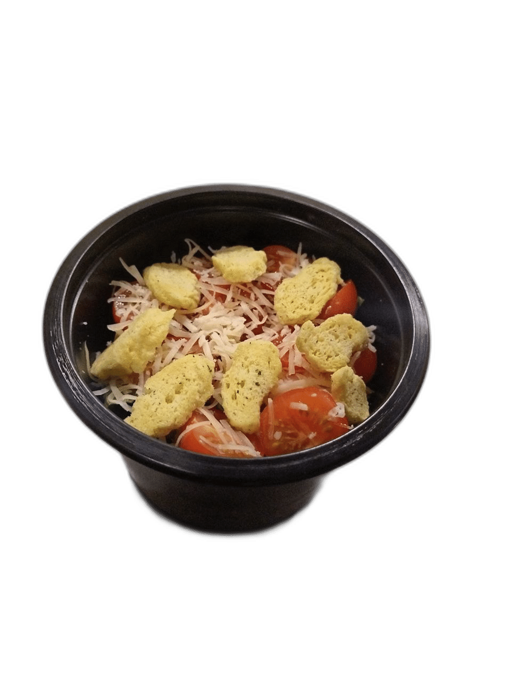 Салат, помидоры черри, курица, сыр, сухарики, соус